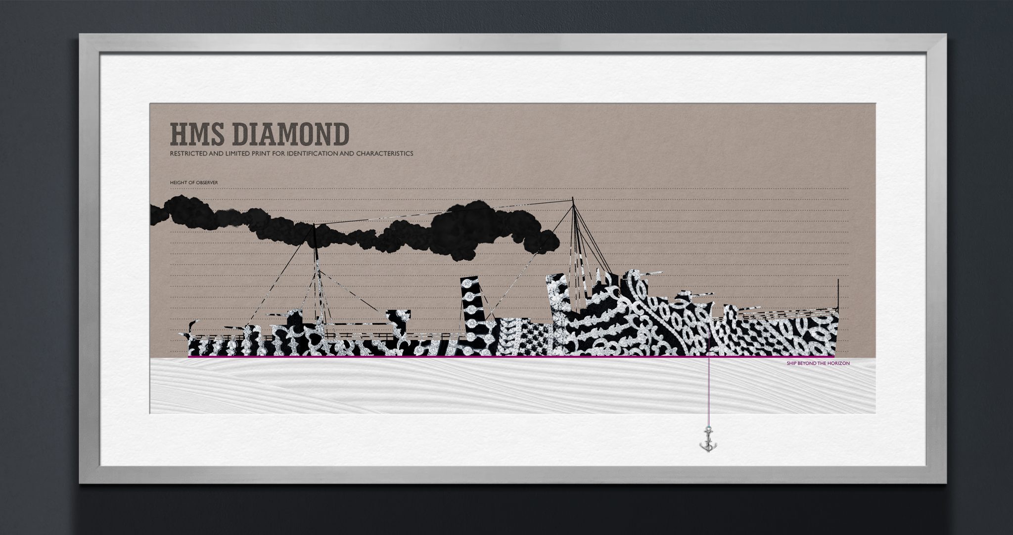 The edition comes with a Sterling Silver anchor (with a minimum millesimal fineness of 925) which is not pierced through the print but is available on request.
